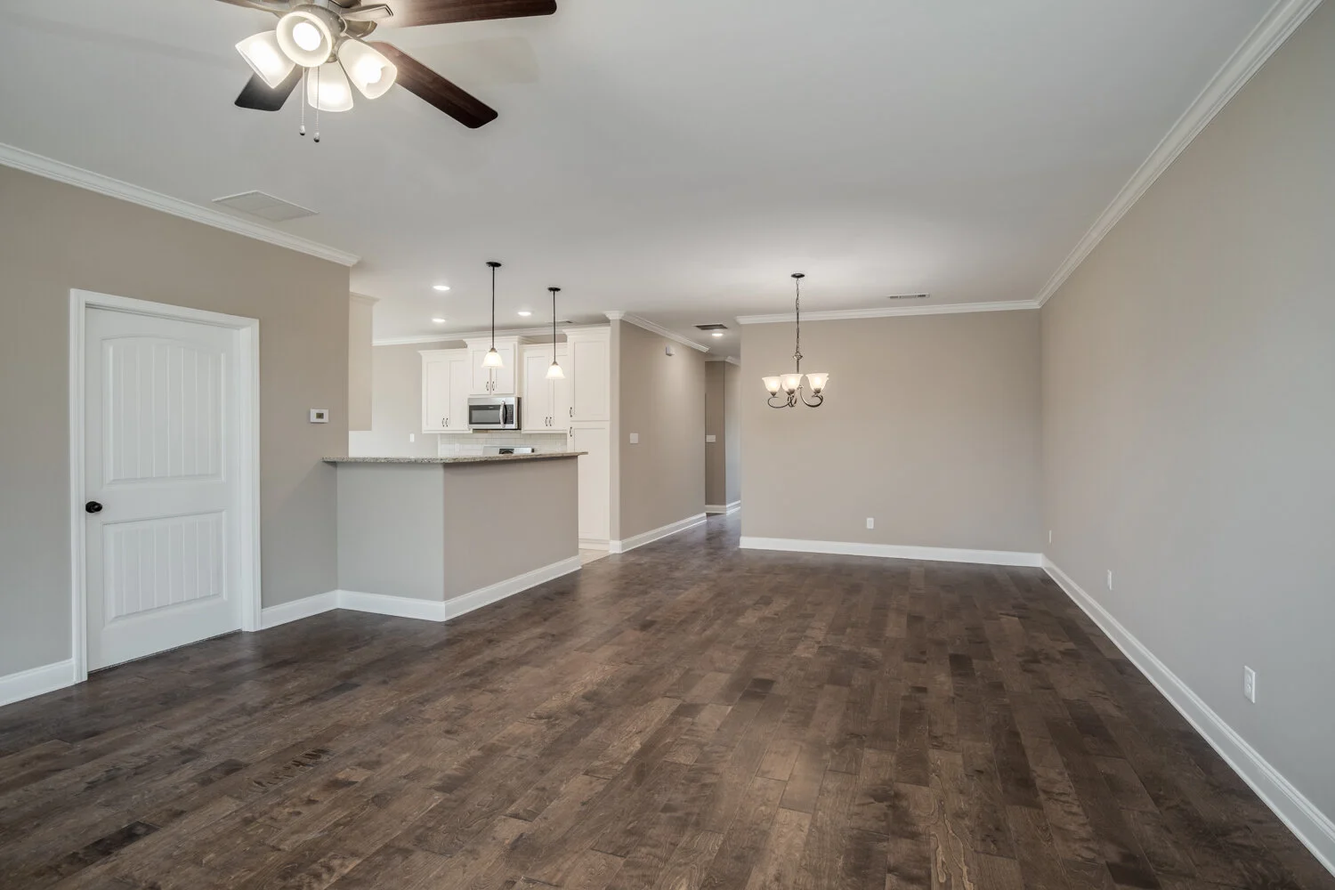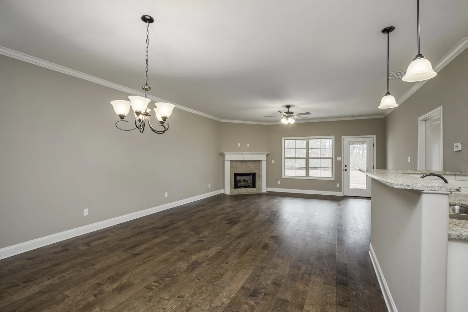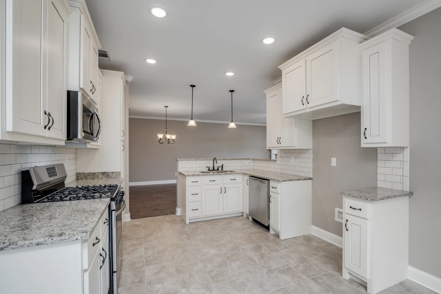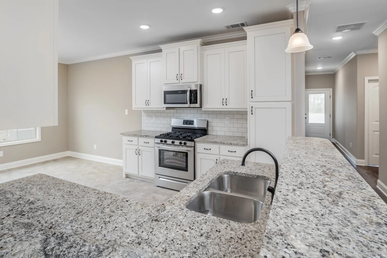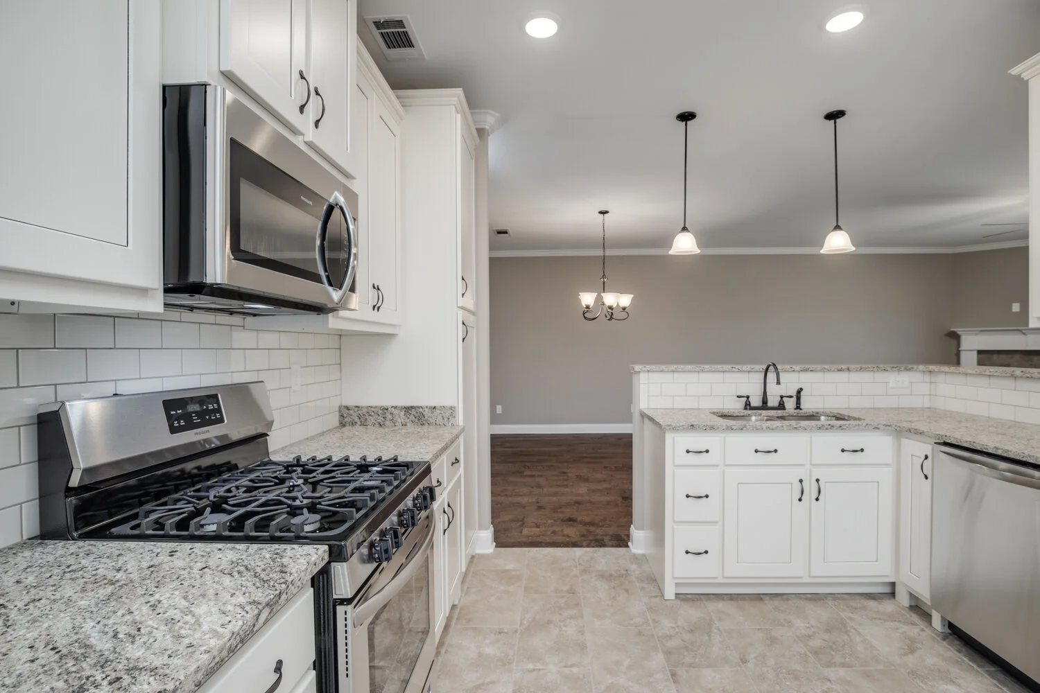 Enjoy a simplified way of life, so you can focus on what makes you happy. These brand new attached townhomes are separated by an insulated sound and fire divider wall. For only $100 per month all your mowing and landscaping is covered. Each home has wide hallways and doors. The master bath has two walk-in closets, double sinks, a large walk-in shower w/bench, and a separate soaker tub. There are custom cabinets, granite countertops, tile backsplash, stainless steel appliances, hardwood floors, crown molding throughout, a gas fireplace, covered patio, low taxes, and more.