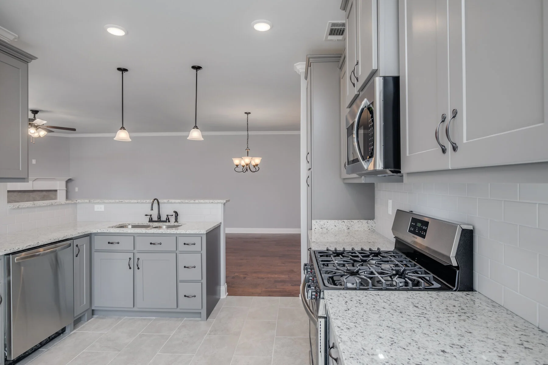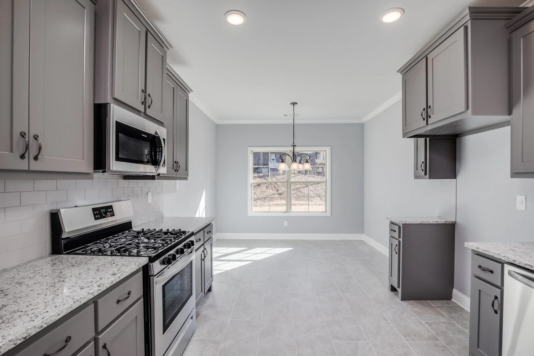 Enjoy a simplified way of life, so you can focus on what makes you happy. These brand new attached townhomes are separated by an insulated sound and fire divider wall. For only $100 per month all your mowing and landscaping is covered. Each home has wide hallways and doors. The master bath has two walk-in closets, double sinks, a large walk-in shower w/bench, and a separate soaker tub. There are custom cabinets, granite countertops, tile backsplash, stainless steel appliances, hardwood floors, crown molding throughout, a gas fireplace, covered patio, low taxes, and more.